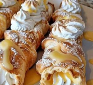 Cream Horns with Custard and Whipped Cream Introduction Elegant, flaky, and filled with rich, creamy goodness, Cream Horns with Custard and Whipped Cream are a true show-stopping pastry. Golden puff pastry spirals create the perfect crunchy shell, which is then layered with smooth custard and pillowy whipped cream. A dusting of powdered sugar and drizzle […]