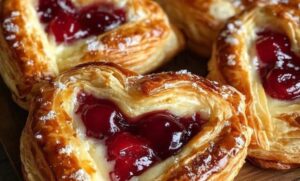 Heart-Shaped Cherry Danish Pastries Introduction Some pastries simply taste good, while others capture both the heart and the eyes. Heart-Shaped Cherry Danish Pastries do exactly that—they’re delicious, charming, and visually stunning. With buttery puff pastry, a creamy cheesecake-style filling, and a vibrant cherry topping, these pastries are perfect for romantic breakfasts, festive gatherings, or any […]