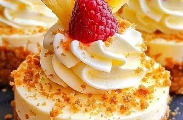 Mini Pineapple Cheesecakes are the perfect combination of elegance, freshness, and indulgence. The crisp crust, velvety filling, and tropical pineapple flavor create a dessert that feels both light and luxurious. Their individual size makes them effortless to serve, while their colorful garnishes add a festive touch. Whether for a summer gathering, a holiday table, or simply a treat-yourself moment, these cheesecakes are guaranteed to delight every guest.